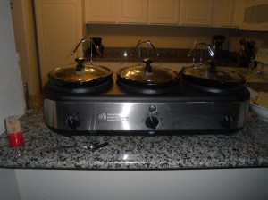 I used this amazing three Crock pot kit from my parents to make most of the food. I had homemade mac n cheese, meatballs and artichoke dip. All turned out super yummy, and I’ll share the recipes later. For dessert, I made s’mores cupcakes!